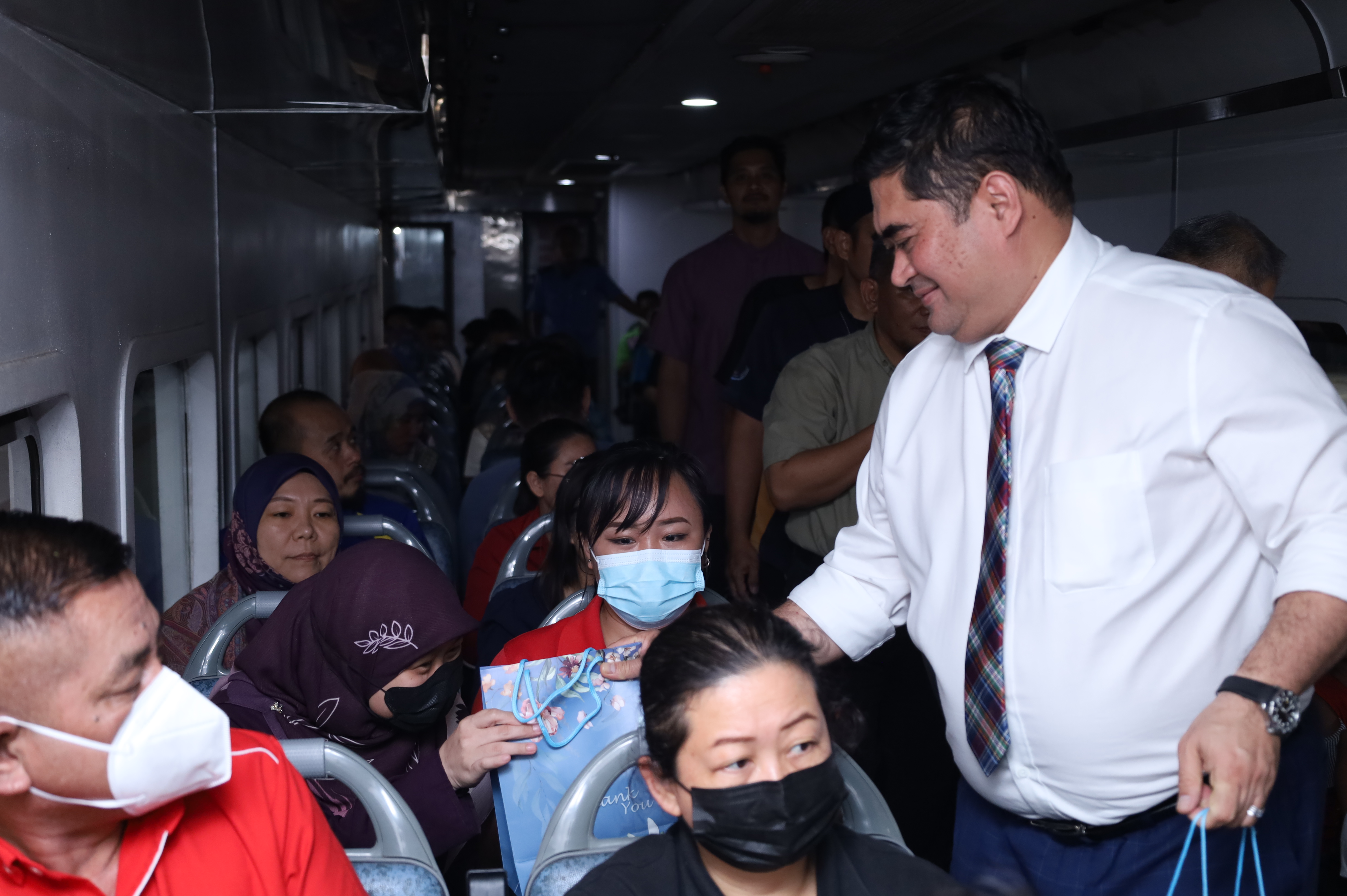 Majlis penyerahan pek makanan berbuka bersama YB Datuk Ir Shahelmey Bin Yahya, Timbalan Ketua Menteri Sabah, Merangkap Menteri Kerja Raya Sabah anjuran Jabatan Keretapi Negeri Sabah dan Badan Kebajikan Islam Keretapi (BADIK) pada 03 April 2024 di gerabak keretapi.