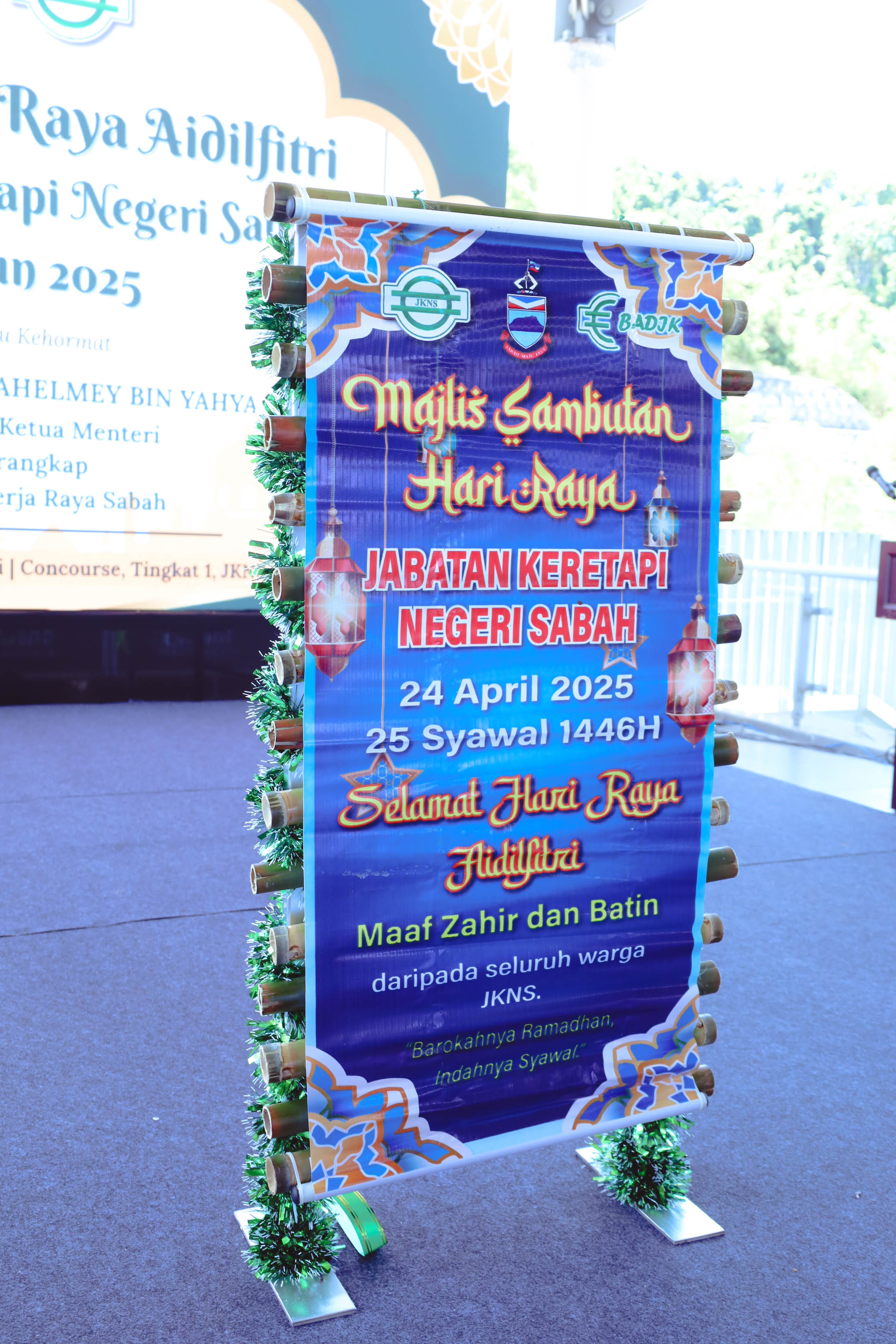 Majlis Amanat Pengarah dan Sambutan Majlis Hari Raya Aidilfitri Jabatan Keretapi Negeri Sabah Tahun 2025 yang dirasmi kan oleh YB Datuk Ir. Hj Shahelmey bin Yahya , Timbalan Ketua Menteri III Merangkap Menteri Kerja Raya Negeri Sabah. Majlis diadakan kan di Concourse, Tingkat 1 JKNS.